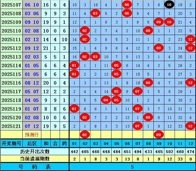 后永诀析:上期后区奖号为07和12,最近5期后区和值分别为12、9、8、10、19,后区跨度漫步边界在1-6,本期后区能干两码02、09。