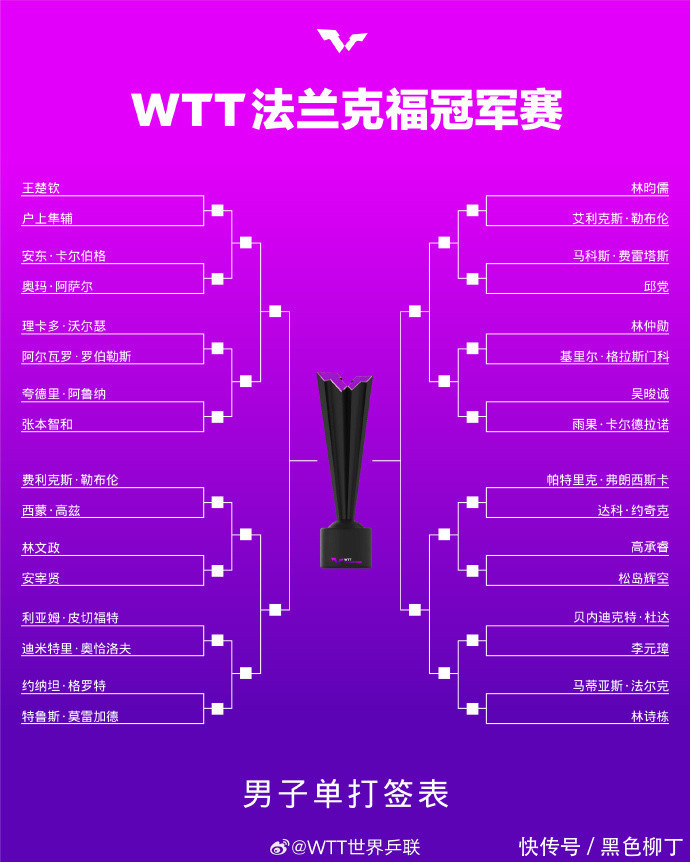 WTT冠军赛法兰克福站抽签揭晓。过程忐忑休整的寰宇第一王楚钦复出首战,对决日真名将户上隼辅,要是胜仗晋级八强,很可能对阵张本智和,这将是一场狂暴的比赛。虽然,王楚钦更浩劫题可能如故半决赛,刚在法国夺冠的费利克斯-勒布伦有契机解围,虽然他也将靠近莫雷加德的签订挑战,要是王楚钦能够再次碰头小莫,确信亦然一场值得关切的比赛。
