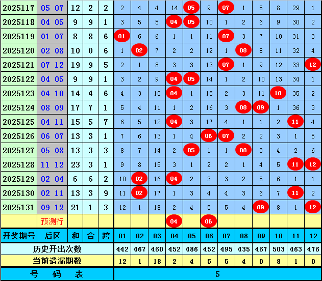 后区别析【一区01-04,二区05-08,三区09-12】:上期后区奖号为09和12,总共出当今第三区,近50期后区三区比为35:33:32,近10期三区比为6:6:8,本期贯注第一、二区号码出现,热心两码04+06。
